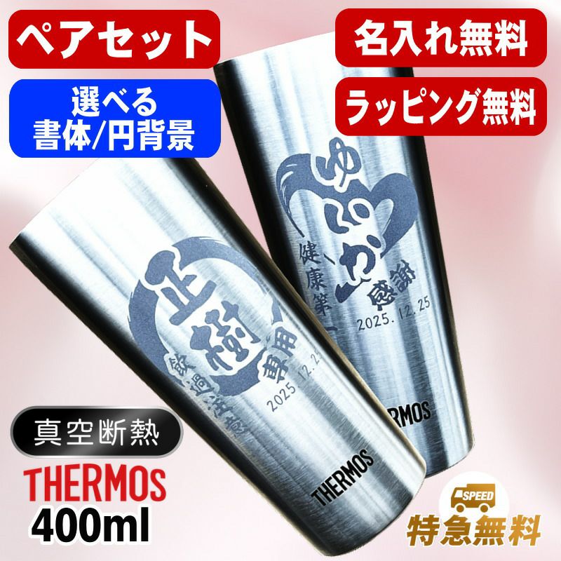 【 送料無料 ラッピング無料 特急対応無料 】 還暦祝い 古希 喜寿 傘寿 米寿 マーク変更可能です。ポイント消化 お誕生日 グッズ として ギフト に最適 ! サーモス真空断熱タンブラー 400ml 名入れ無料 ペアセット JDI-400P 円背景 EH32