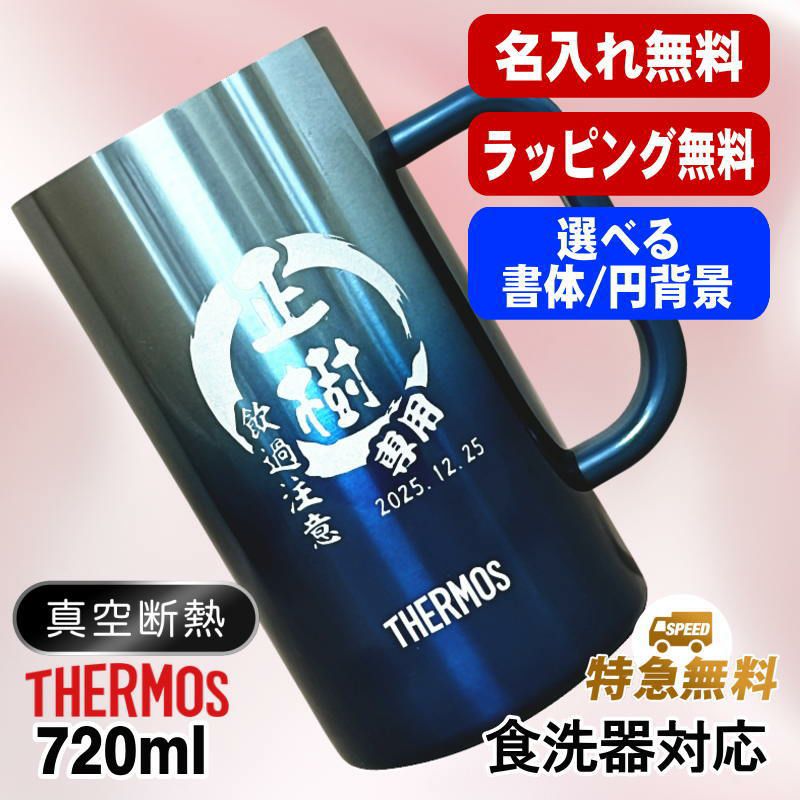 【 送料無料 ラッピング無料 特急対応無料 】 還暦祝い 古希 喜寿 傘寿 米寿 マーク変更可能です。ポイント消化 お誕生日 グッズ として ギフト に最適 ! サーモス真空断熱ステンレスジョッキ 720ml 名入れ無料 食洗器対応 青緑 紫 JDK-721C 円背景 EH6
