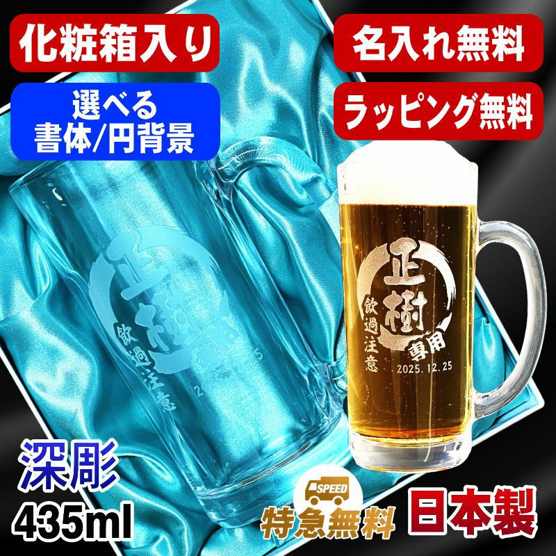 【 送料無料 ラッピング無料 特急対応無料 】 還暦祝い 古希 喜寿 傘寿 米寿 マーク変更可能です。ポイント消化 お誕生日 グッズ として ギフト に最適 ! 【化粧箱入り】日本製 ビールジョッキ 435ml 名入れ無料 食洗器対応 円背景 EH19