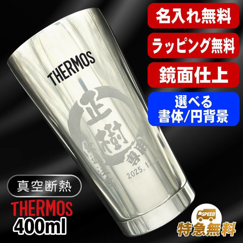 【 送料無料 ラッピング無料 特急対応無料 】 還暦祝い 古希 喜寿 傘寿 米寿 マーク変更可能です。ポイント消化 お誕生日 グッズ として ギフト に最適 ! サーモス真空断熱タンブラー 400ml 名入れ無料 光沢 JMO-GP2 SL 単品 円背景 EH22