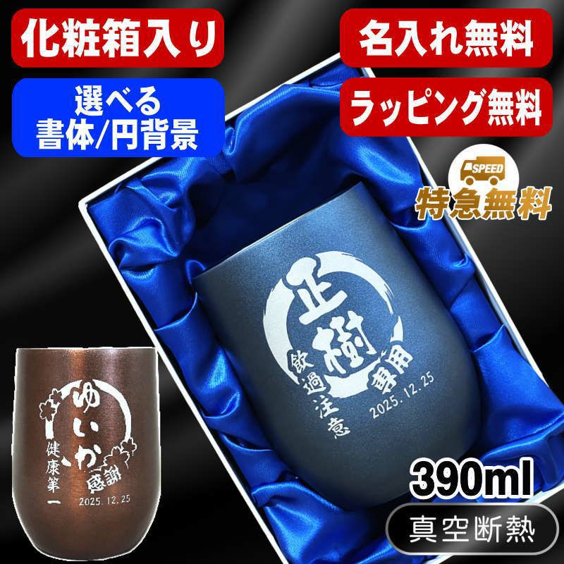 【 送料無料 ラッピング無料 特急対応無料 】 還暦祝い 古希 喜寿 傘寿 米寿 マーク変更可能です。ポイント消化 お誕生日 グッズ として ギフト に最適 ! 【化粧箱入り】真空断熱タンブラー 390ml 名入れ無料 ネイビー ブラウン 丸底 円背景 EH46