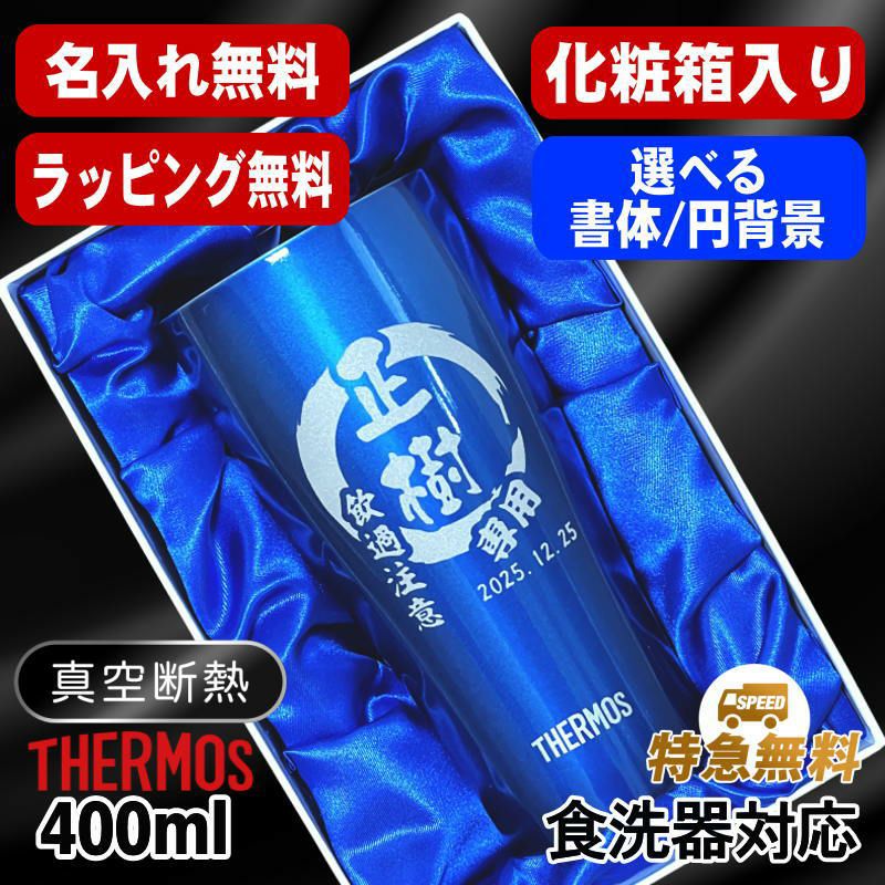 【 送料無料 ラッピング無料 特急対応無料 】 還暦祝い 古希 喜寿 傘寿 米寿 マーク変更可能です。ポイント消化 お誕生日 グッズ として ギフト に最適 ! 【化粧箱入り】サーモス真空断熱タンブラー 420ml 名入れ無料 食洗器対応 青 緑 JDY-420C 円背景 EH26