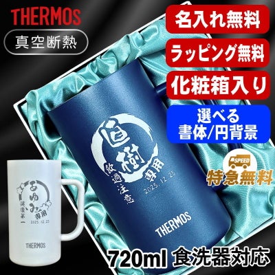 【化粧箱入り】サーモス真空断熱ステンレスジョッキ 720ml 名入れ無料 食洗器対応 青 白 JDK-722C 円背景 EH7のレビューを書く