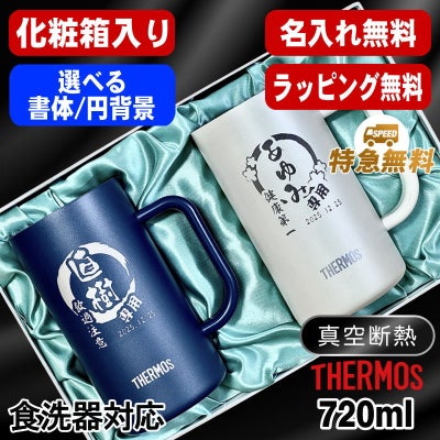 【化粧箱入り】サーモス真空断熱ステンレスジョッキ ペア 720ml 名入れ無料 食洗器対応 青 白 セット JDK-721C 円背景 EH8のレビューを書く